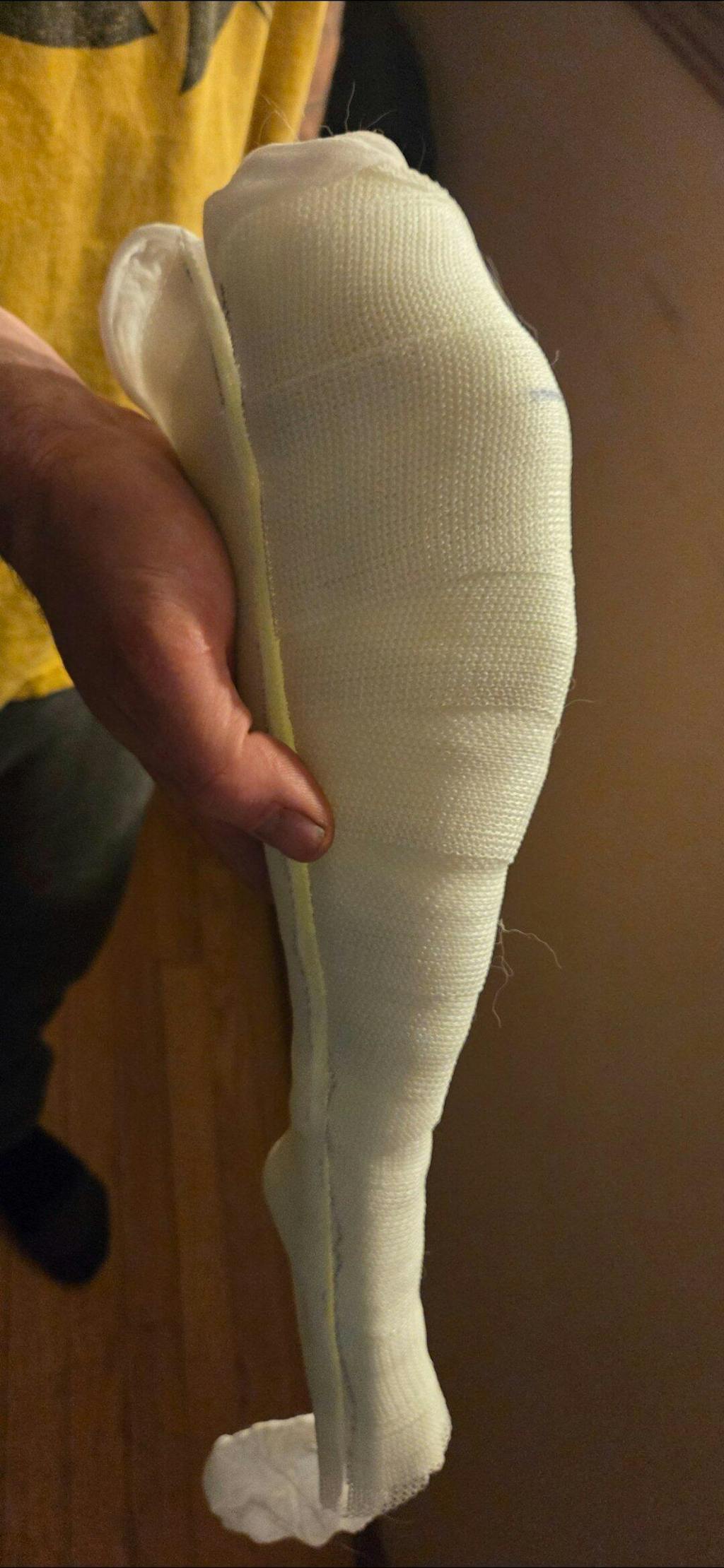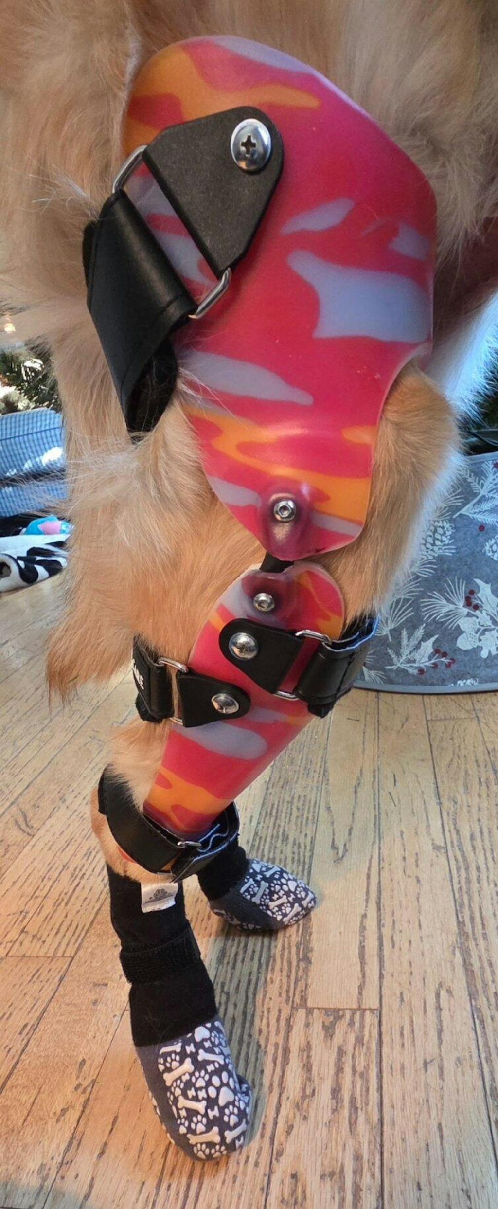 Good fit and finish. Lets him play rough without worrying about him being pushed back on that leg. Surgery just isn't an option right now.